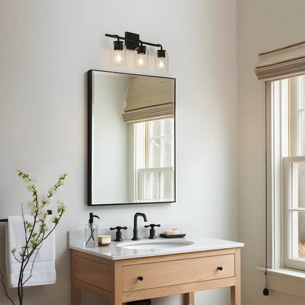 Modern 3-light Matte Black Wall Sconce with Clear Dome Glass Shade, Industrial 19.5 in. Vanity Light for Bathroom