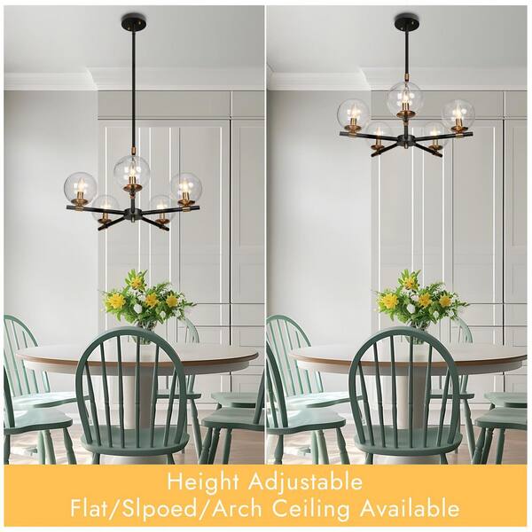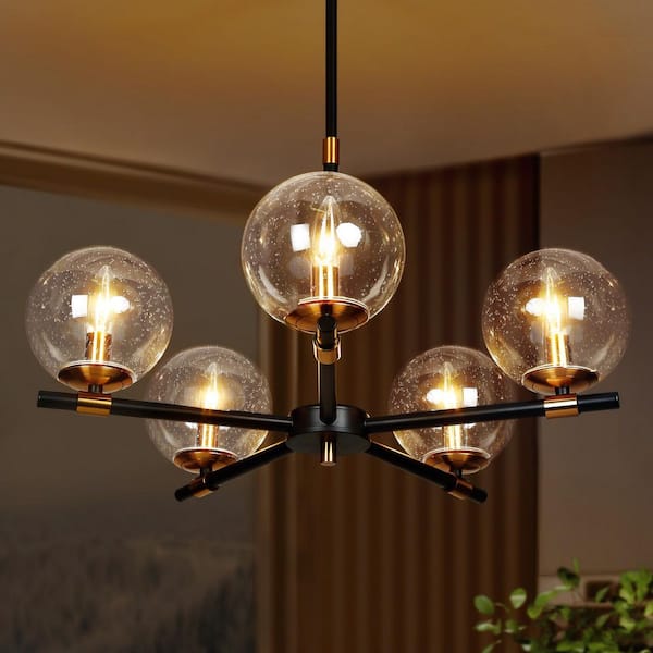Modern Black Island Pendant Light, Ostter 22 in. 5-Light Brass Gold Round Chandelier, Industrial Hanging Light Fixture