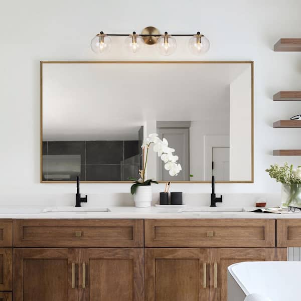 Modern DIY Vanity Light, 30 in. 4-Light Brass Gold Bathroom Vanity Light, Transitional Globe Seeded Glass Bath Light