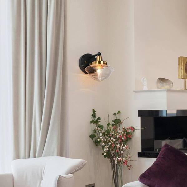 Modern Seeded Glass Wall Sconce, 6.5 in. 1-Light Black Bathroom Vanity Light, Industrial Brass Wall Light Fixture