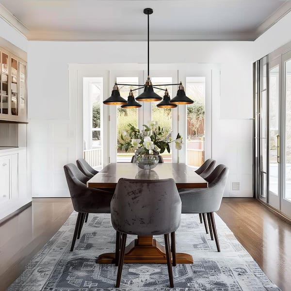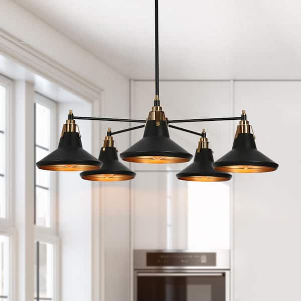Tencanonia Modern Industrial 5-light Matte Black Sputnik Chandelier with Metal Shade, Brass Dining Room Pendant Light