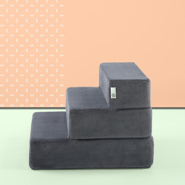 15 in. Small Foam Charcoal 3 of Steps Pet Stairs