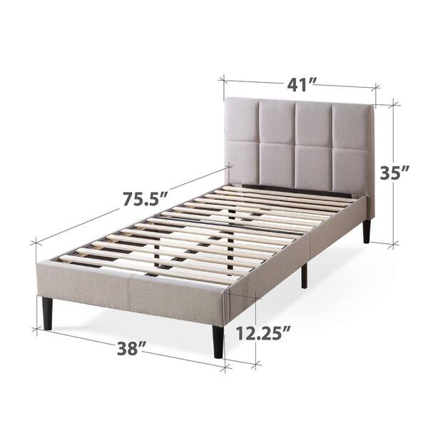 Lottie Beige Twin Upholstered Platform Bed Frame with Short Headboard