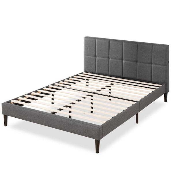 Lottie Grey King Upholstered Platform Bed Frame with Short Headboard and USB Ports