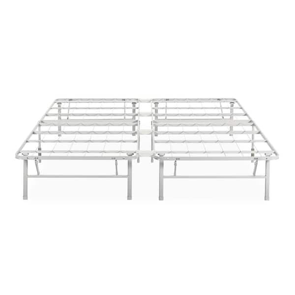 SmartBase Tool-Free Assembly White King Metal Bed Frame without Headboard