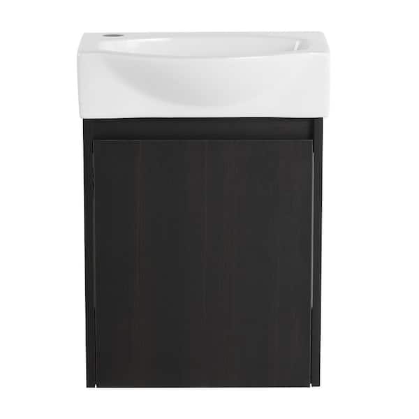 16 in. Single Sink Floating Black Bath Vanity with White Ceramic Top, Scratch Resistant, One Cabinet Door