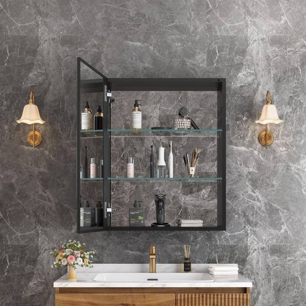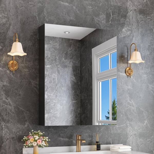16 in. W x 20 in. H Rectangular Aluminum Recessed/Surface Mount Medicine Cabinet with Mirror, Adjustable Shelf, Black