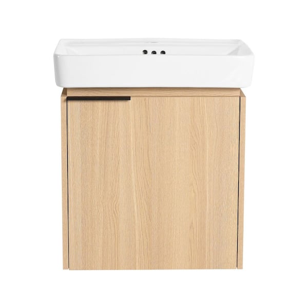 20 in. Single Sink Floating Oak Bath Vanity with White Ceramic Top, Overflow Hole, Pre-drilled Faucets