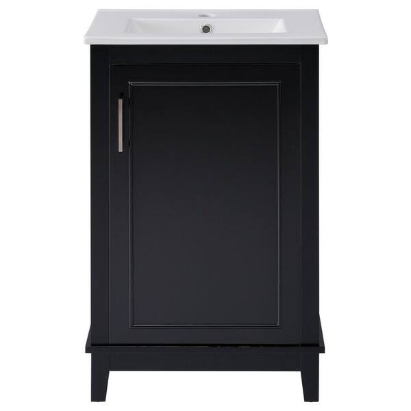 20 in. Single Sink Freestanding Black Bath Vanity with White Ceramic Top, Double Shelves