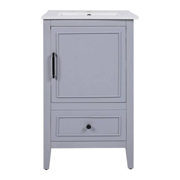 20 in. Single Sink Freestanding Gray Bath Vanity with White Ceramic Top, Adjustable Foot Pads, Storage Rack