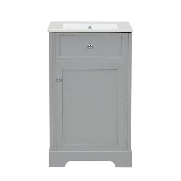 20 in. Single Sink Freestanding Gray Bath Vanity with White Ceramic Top, Adjustable Shelf