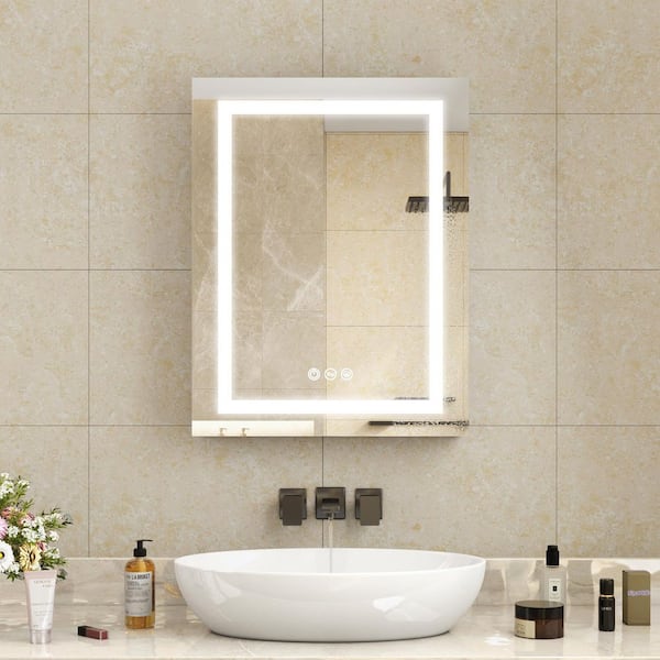 20 in. W x 26 in. H Rectangular Aluminum Recessed/Surface Mount Medicine Cabinet with Mirror and Light, Left Hinge