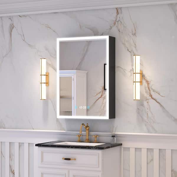 20 in. W x 28 in. H Rectangular Aluminum Medicine Cabinet with Mirror and Light, Defogger, Outlet, Black