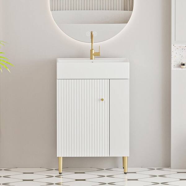 21.6 in. Single Sink Freestanding White Bath Vanity with White Ceramic Top, Soft-closing Hinge, Right-side Open Shelf