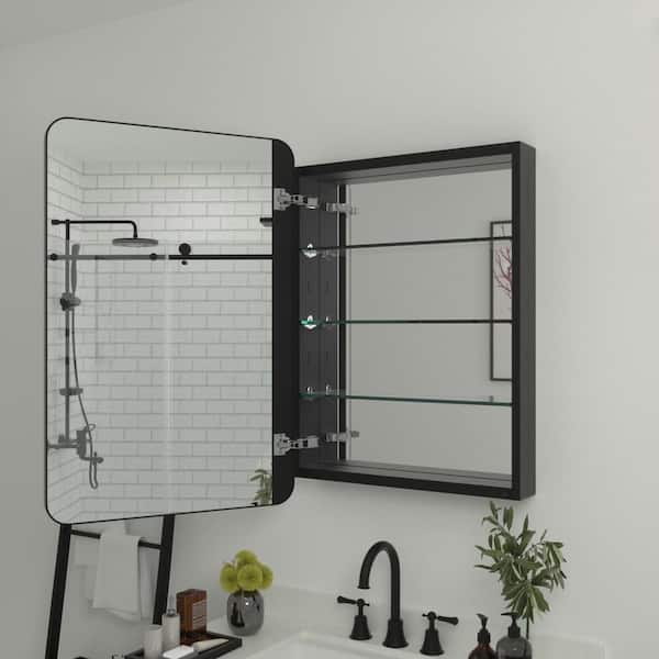 23 in. W x 30 in. H Rectangular Aluminum Recessed/Surface Mount Medicine Cabinet with Mirror Adjustable Shelves