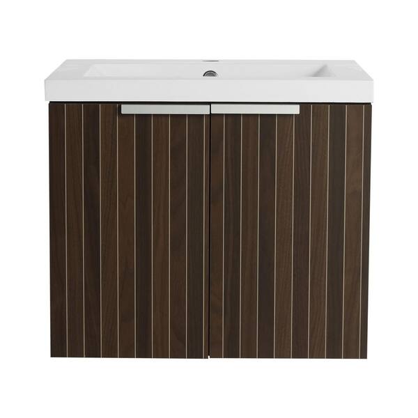 24 in. Single Sink Floating Brown Bath Vanity with White Resin Top, Soft Close Doors