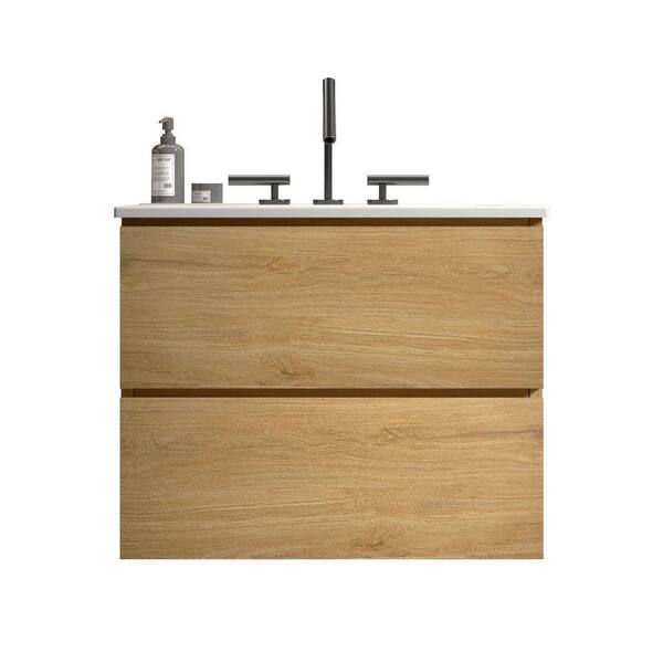 24 in. Single Sink Floating Oak Bath Vanity with White Ceramic Top (Assembled), 3 Predrilled Faucet Holes