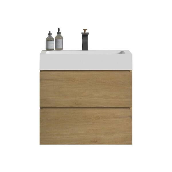 24 in. Single Sink Floating Oak Bath Vanity with White Ceramic Top (Assembled), Double Drawers