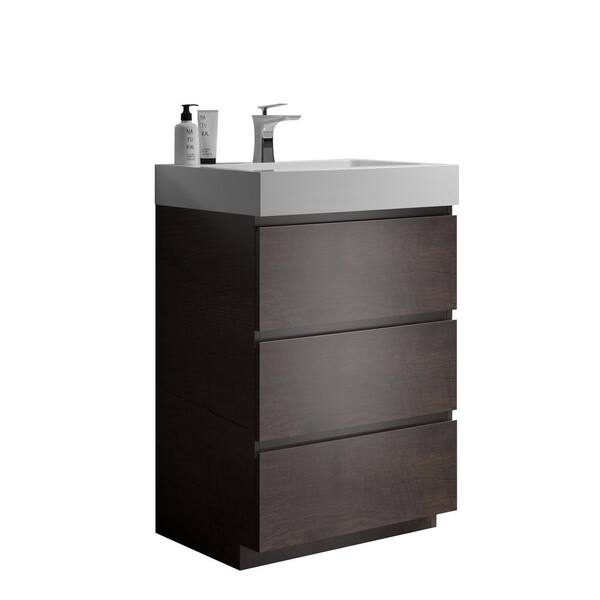 24 in. Single Sink Freestanding Walnut Bath Vanity with White Engineered Stone Top (Assembled), 3 Soft-closing Drawer