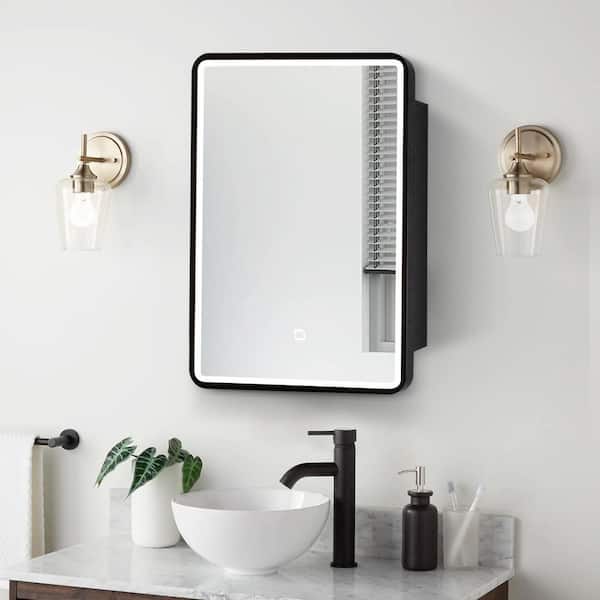 24 in. W x 30 in. H LED Rectangular Metal Surface Mount Medicine Cabinet with Mirror and Light, Anti-Fog