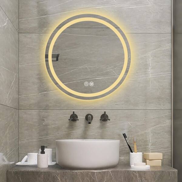 28 in. W x 28 in. H Round Frameless LED Wall Bathroom Vanity Mirror in Matte White