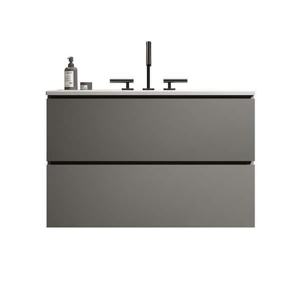 30 in. Single Sink Floating Gray Bath Vanity with White Ceramic Top (Assembled), Handle-free Design