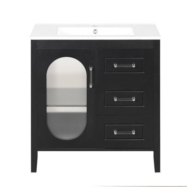 30 in. Single Sink Freestanding Black Bath Vanity with White Ceramic Top, Adjustable Shelf and 2 Drawers