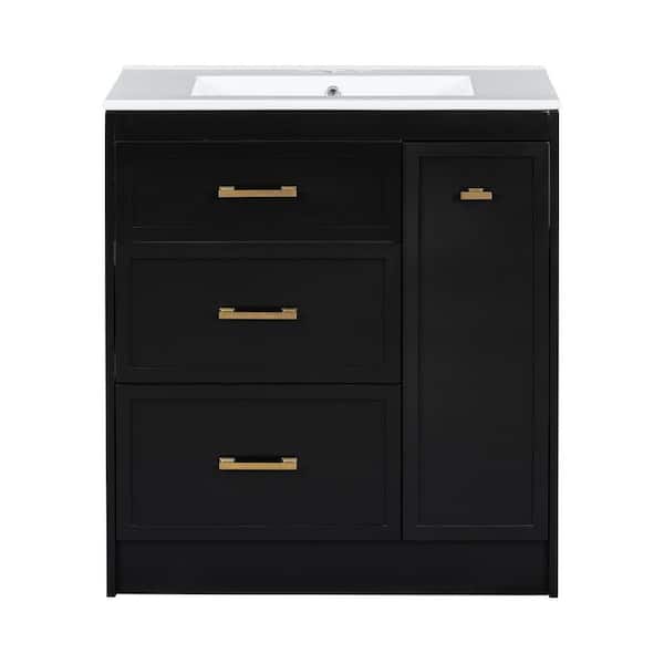 30 in. Single Sink Freestanding Black Bath Vanity with White Ceramic Top, Double-Layer Drawer and Deep Storage