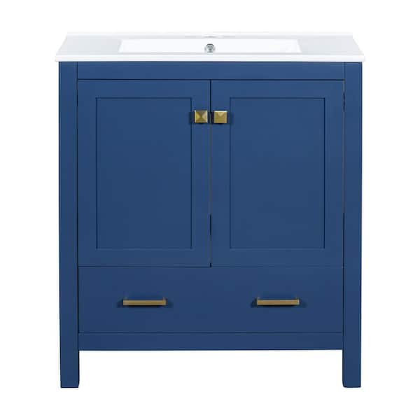 30 in. Single Sink Freestanding Blue Bath Vanity with White Ceramic Top, Removable Divider, Powerful Storage