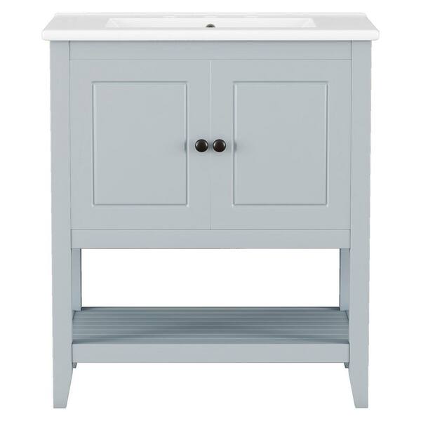 30 in. Single Sink Freestanding Gray Bath Vanity with White Ceramic Top, Open Style Shelf
