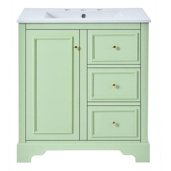 30 in. Single Sink Freestanding Green Bath Vanity with White Ceramic Top, 3 Drawers and Adjustable Shelves