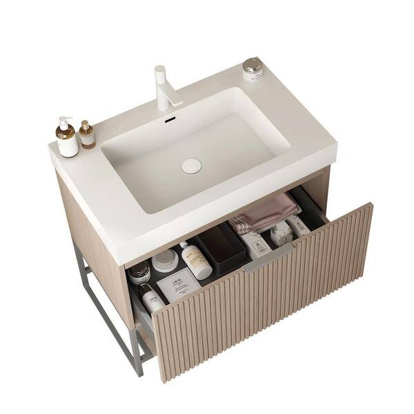 30 in. Single Sink Freestanding Plywood Brown Bath Vanity with White Acrylic Top (Assembled)