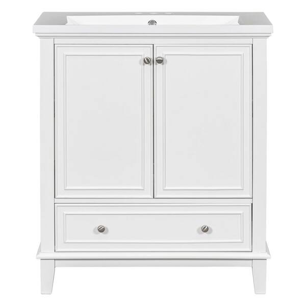 30 in. Single Sink Freestanding White Bath Vanity with White Ceramic Top, Removable Drawer Divider