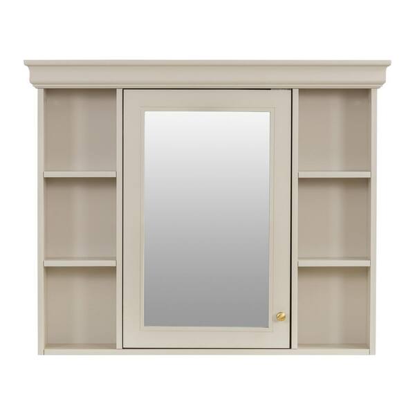 35 in. W x 28 in. H Rectangular MDF Board Surface Mount Bathroom Medicine Cabinet with Mirror, Open Shelves, Beige