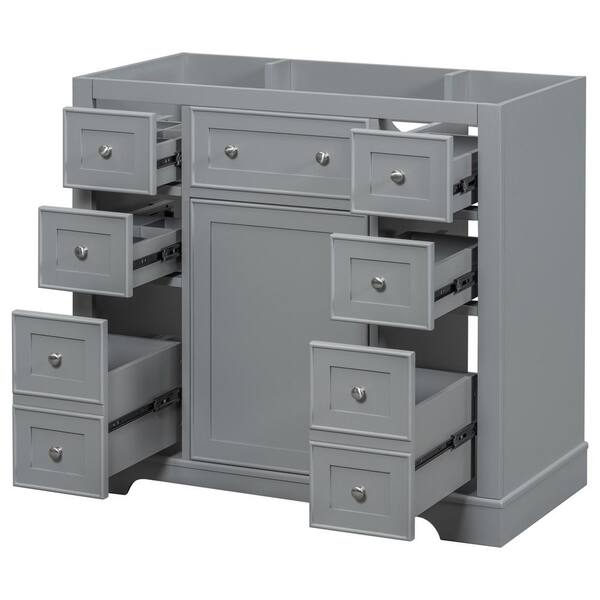 36 in. Freestanding Bath Vanity Cabinet without Top in Gray, Adjustable Shelf