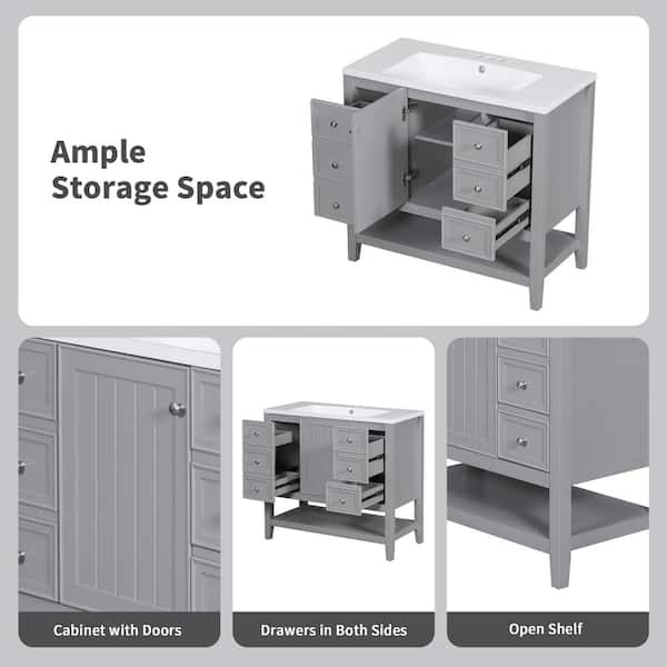 36 in. Freestanding Bath Vanity Cabinet without Top in Gray, Open Shelf