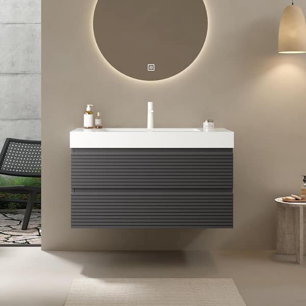 36 in. Single Sink Floating Gray Bath Vanity with White Acrylic Top, Soft-close Drawers