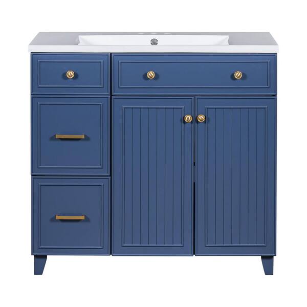 36 in. Single Sink Freestanding Blue Bath Vanity with White Resin Top, 2 Drawers and 1 Adjustable Storage Shelf