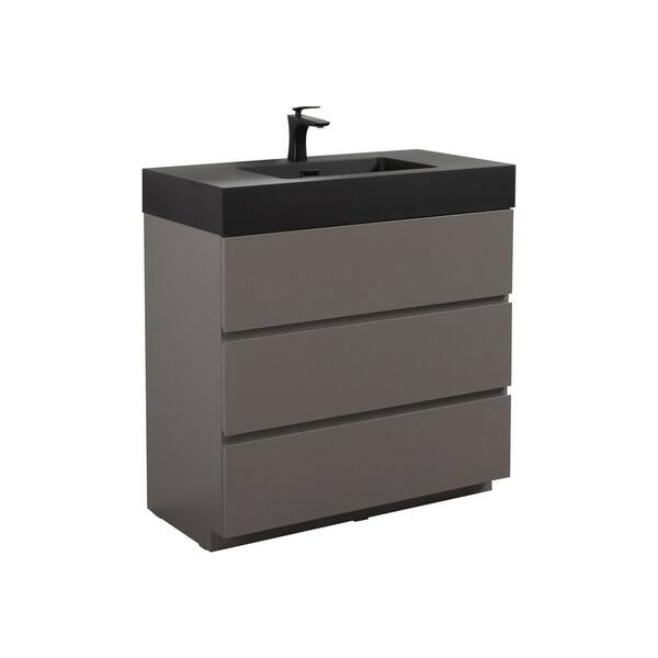 36 in. Single Sink Freestanding Gray Bath Vanity with Black Engineered Stone Top (Assembled), 3 Soft-closing Drawer