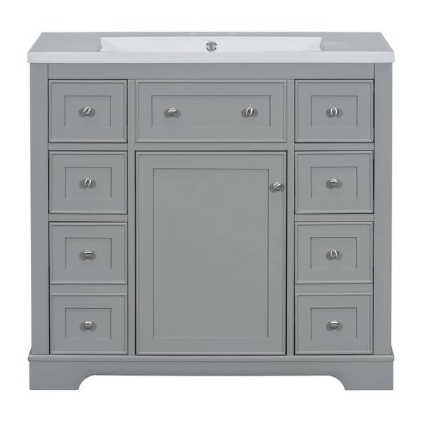 36 in. Single Sink Freestanding Gray Bath Vanity with White Ceramic Top, One Cabinet and Six Drawers
