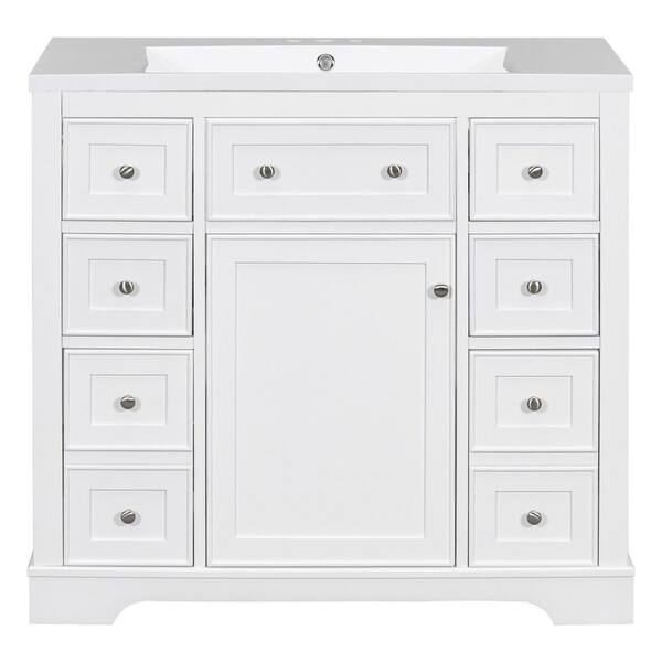 36 in. Single Sink Freestanding White Bath Vanity with White Ceramic Top, One Cabinet and Six Drawers