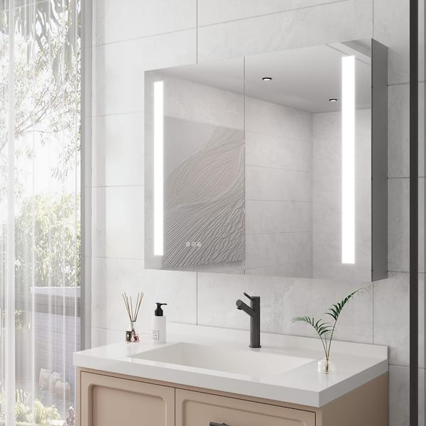 36 in. W x 30 in. H Rectangular Aluminum Recessed or Surface Mount Medicine Cabinet with Mirror and Light, Touch Switch