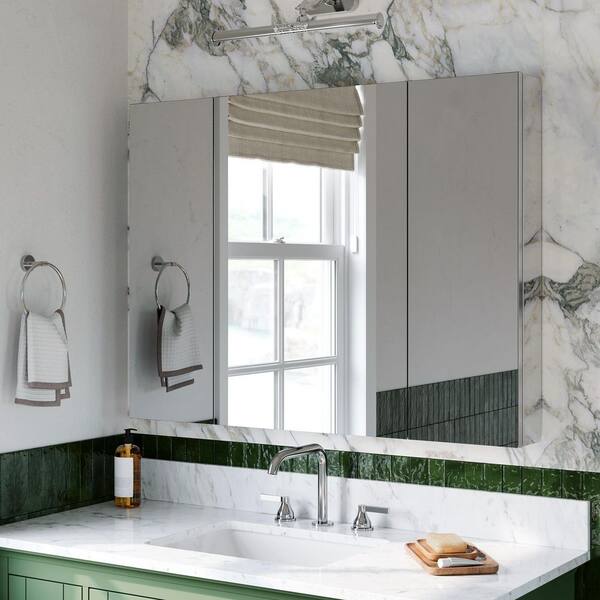 40 in. W x 30 in. H Rectangular Aluminum Recess/Surface Mount Medicine Cabinet with Mirror, Triple Swing