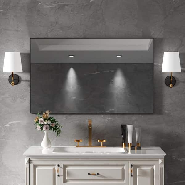 48 in. W x 30 in. H Rectangular Beveled Metal Framed Wall Bathroom Vanity Mirror in Black