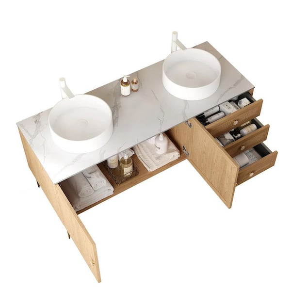 60 in. Double Sink Freestanding Plywood White Bath Vanity with White Ceramic Top (Assembled), 5 Metal Legs