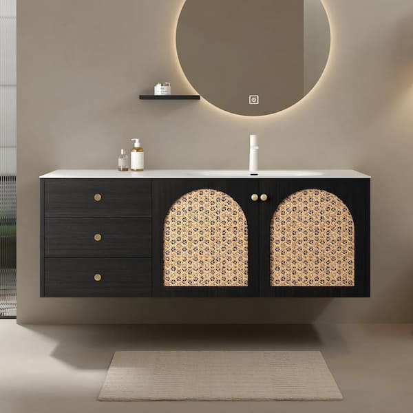 60 in. Single Sink Floating Plywood White Bath Vanity with White Cast Polymers Top (Assembled)
