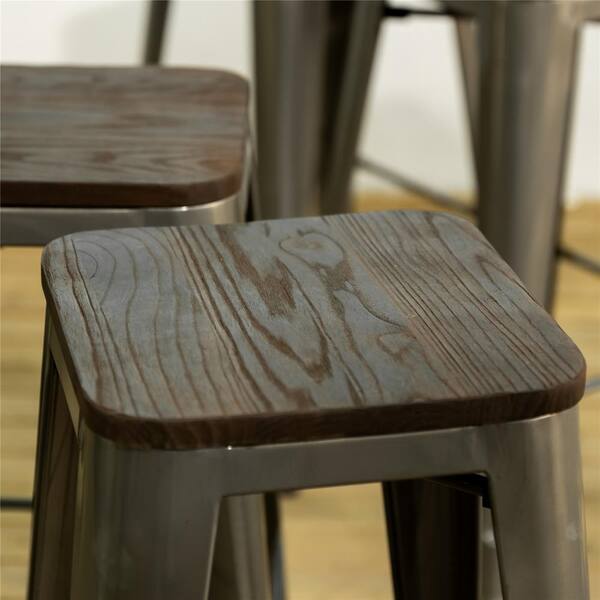 Zolnes 29 in. Silver Backless Metal Frame Bar Stool with Solid Wood Seat (Set of 2)