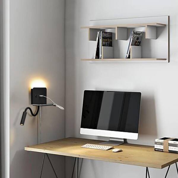 6.3 in. 2-Light Plug in Black LED Wall Sconces with Flexible Gooseneck Spotlight and Switch, 7W 3000K Warm White