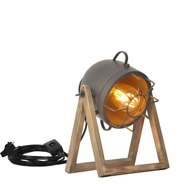 Industrial 12.6 in. 1-Light Wood Base Table Lamp for Living Room with Grey Rotate Metal Shade, E26 Base,Not Include Blub