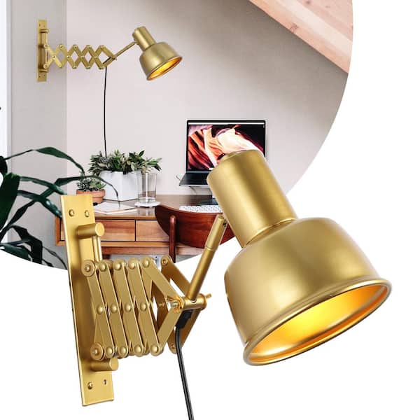 Modern 5.9 in. 1 Light Plug in Wall Sconces with Gold Swing Arm Shade, Farmhouse Extend Reading Wall Lamp with Switch